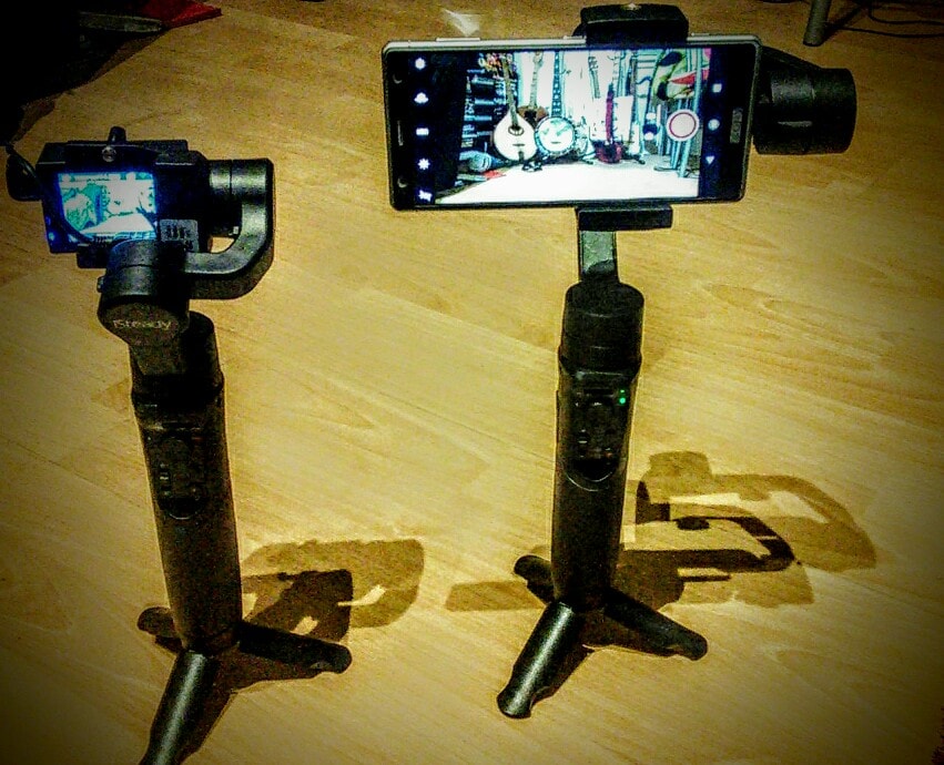 I choose mirrorless, bridge cameras, and GoPro action cameras instead. Their image quality is consistently superb. They keep everything in focus, even under stage lighting changes, and, because they are smaller, and lighter, I can offer discrete, multi-camera, filming set-ups, clipping cameras above stages, by drum kits, and places a DSLR set-up would be impossible. Using gimbal mounts, I have small, lightweight, ‘stedicams’. The back-monitors on these little cameras, particularly the DJI Osmo Pocket, (pictured below), are fantastic. I can zoom, pan and tilt the camera, and it’s on a giroscope, so no shakes, or it can be set-up to follow movement !